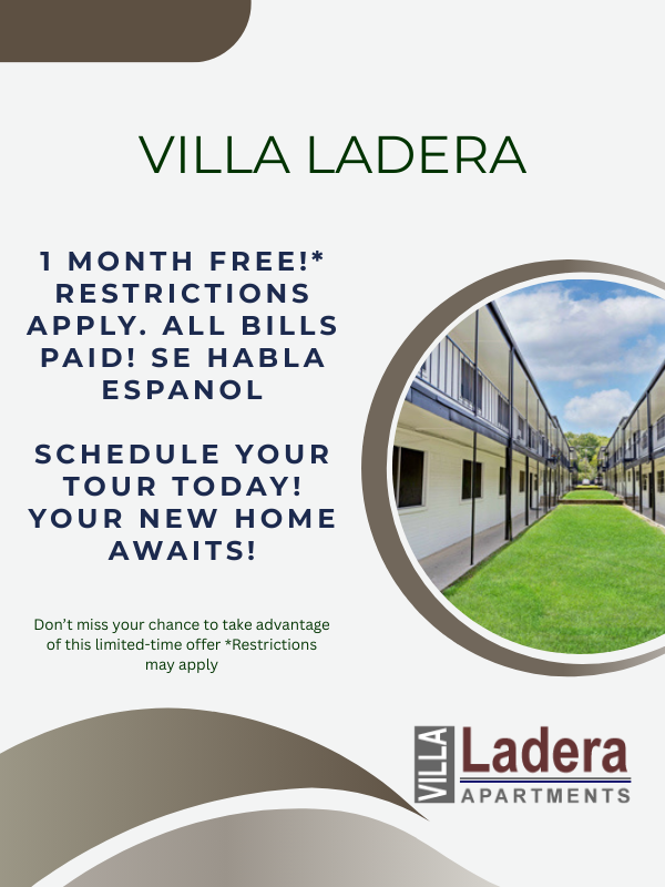 Welcome to Villa Ladera! Our community offers spacious 1 and 2 bedroom apartments. Great location minutes to downtown Dallas.